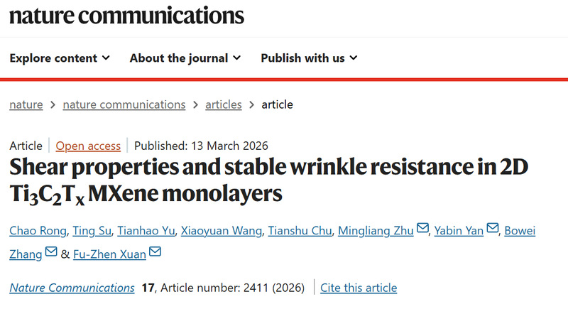 近日,我校开云官方网页版官网轩福贞教授团队在《自然·通讯》上发表了题为“二维Ti3C2Tx MXene单层纳米片的...