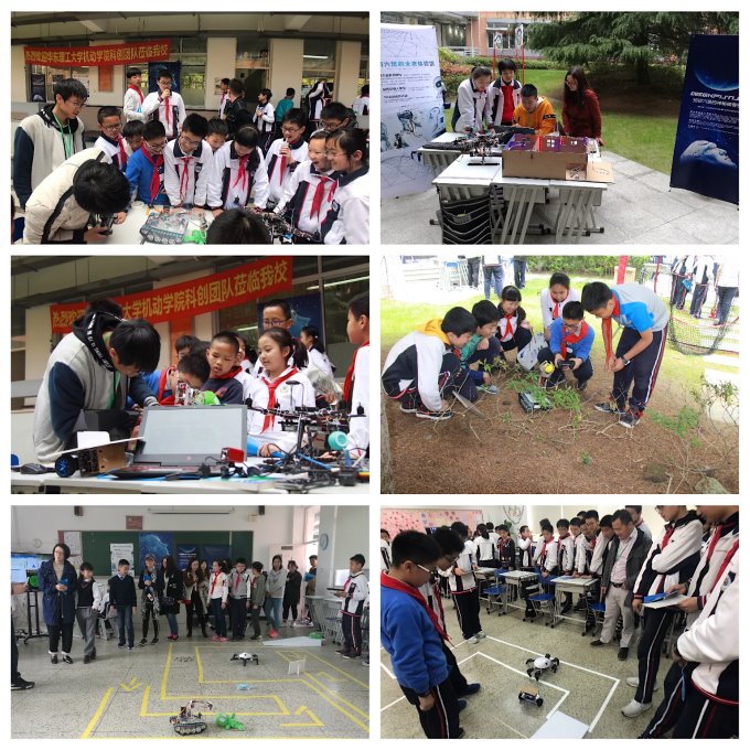 机动学院在本次活动中展示了 “智能家居老人看护系统”、“救援机器人”、“神奇的平衡车”、“无人机”等4件大学生科创作品,各团队负责人为中学生详细讲解了作品的设计理念和设计原理,引来众多学生的围观。为了让中学生对作品有更加深入的体验和了解,团队负责人还提前设置了赛道,并指导中学生们亲手操纵救援机器人,从起点出发绕过重重弯道和障碍到达指定区域,操纵机械臂抓取玩偶,最终实现救援任务。同学们的参与热情异常高涨,他们纷纷摩拳擦掌要一比高下。活动结束后,学院的科创作品还被该校科创部借用,留在该校为后续“科技开放日”活动做专题展示。
