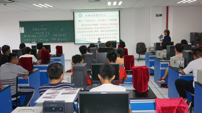 实验室安全教育和参观:机械实验教学中心老师对新生开展实验室安全教育,结合机械实验教学中心的特点,就实验室安全规定、个人防护安全、水电气及消防安全、化学危险品安全、压力容器安全、仪器设备安全、预防和急救等方面做了详细讲解,还参观了实验一楼605实验室,目睹三年级学生在实验室认识实习时如何规范着装等,让新生深刻意识到实验室安全的重要性,树立“预防为主,安全第一”的思想。