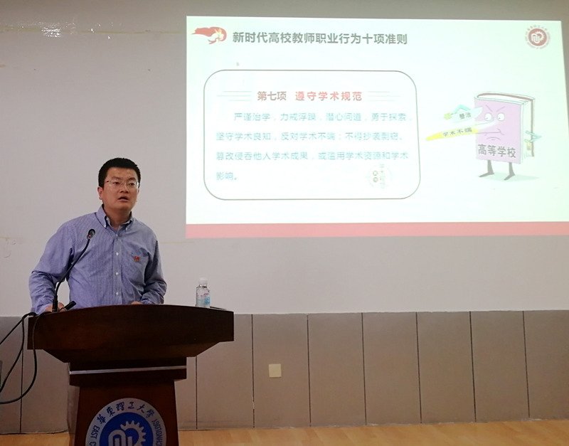 首先,李煜佳带领与会老师学习了日前教育部公开曝光的8起违反教师职业行为十项准则的典型案例,并和大家一起重温了《华东理工大学教师师德失范处理办法》和《华东理工大学教职工处分暂行规定》,希望全院教师引以为戒,牢固树立底线意识,杜绝师德失范行为的发生。