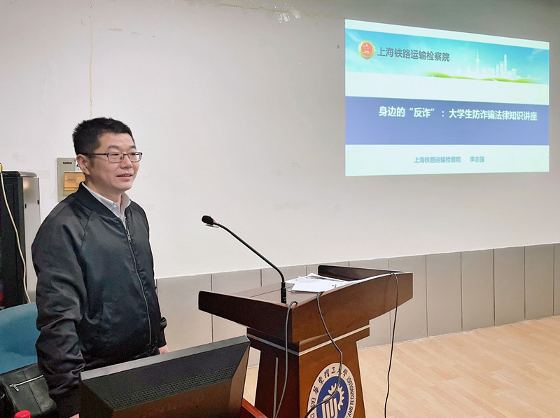 为切实提高学院师生的防范意识,了解诈骗的危害以及防范措施,筑牢防范电信网络诈骗的防火墙,4月12日,机动学院特邀上海市铁路运输检察院的李志强检察官,为学院学生开展主题为“身边的‘反诈’:大学生防诈骗法律知识讲座”的专题讲座,讲座采取线上线下相结合的方式。机动学院党委副书记李煜佳出席讲座。