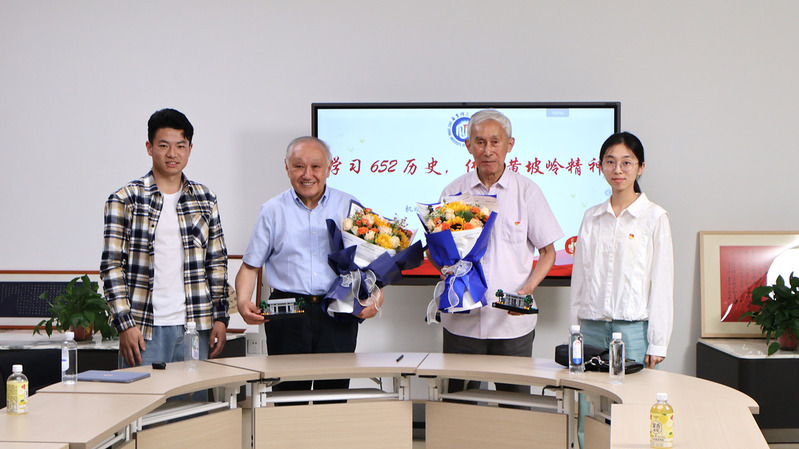 6月18日下午,机动学院奉贤校区本科生党支部在大学生活动中心107室开展主题党日活动。活动邀请学院退休老教师、曾全面参与“652工程”建设的蔡仁良、严思宏两位老先生走进奉贤园区,给学院思政教师和青年学生同上“学习652历史,传承黄坡岭精神”主题党课。各年级辅导员、支部学生党员和入党积极分子代表等20余人参加活动。